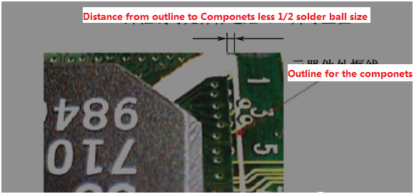 6. The distance between the BGA frame line and the edge of the component body is too close.